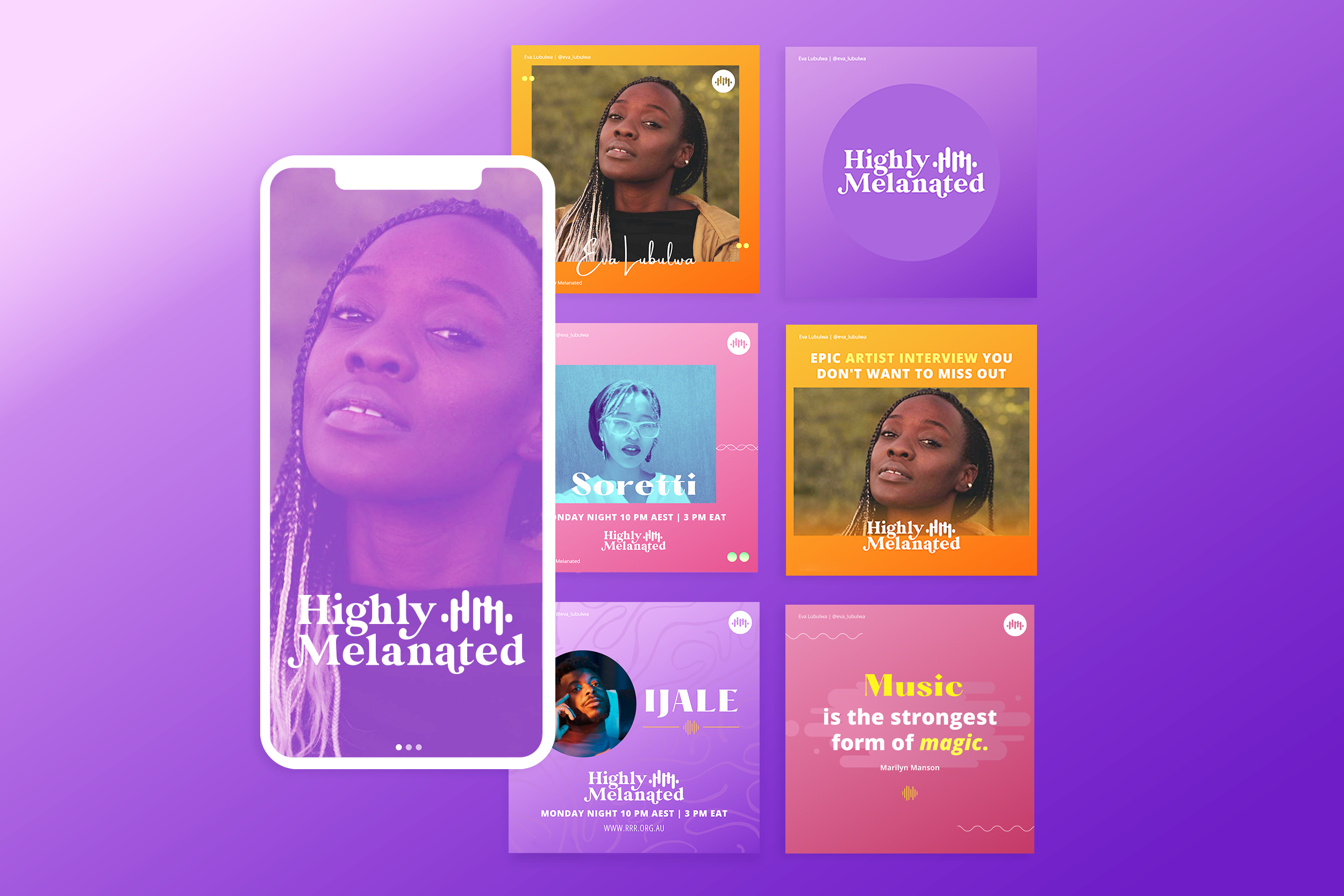 Highly Melanated – A vibrant visual identity that celebrates the rhythm and cultural power of Black music through Highly Melanated, a program on Australia’s radio station